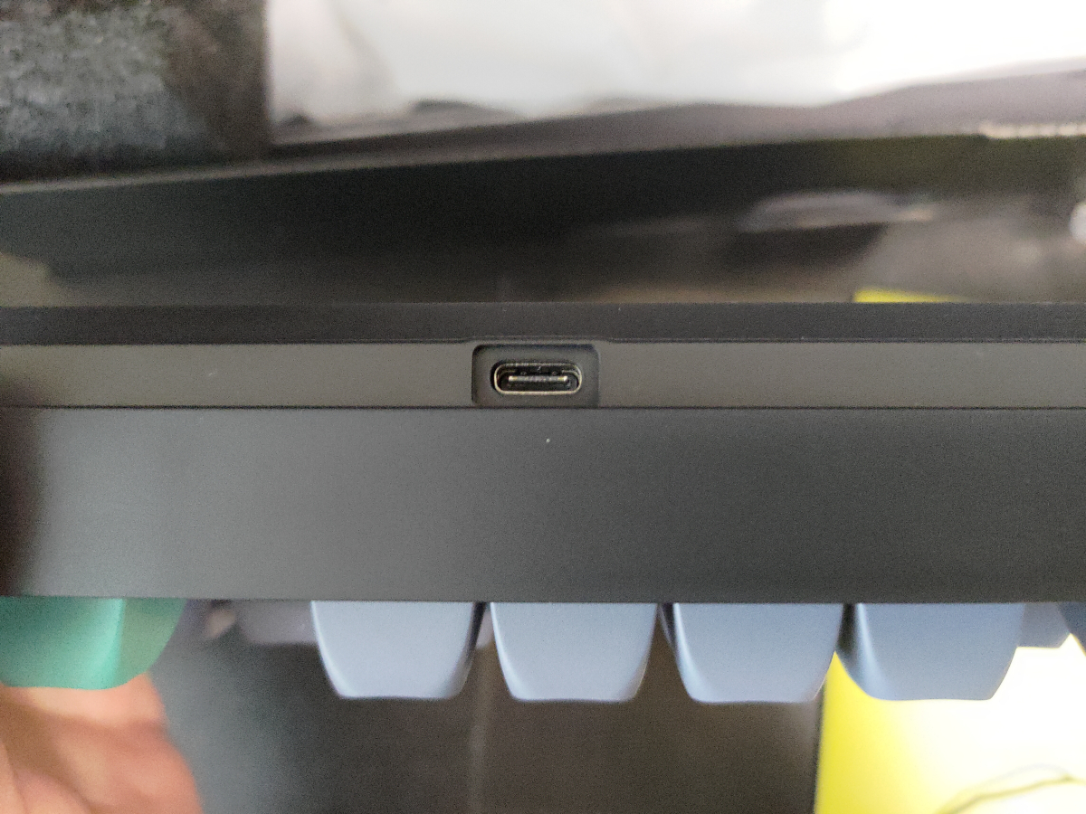 とりあえず USB 接続してキーボード左側面のスイッチを有線に切り替えて接続すると下記のようにライティングが入り接続されたのが確認できます。