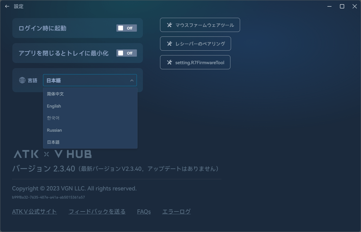 下記のサイトから ATK V HUB APP をダウンロードしてインストールします。